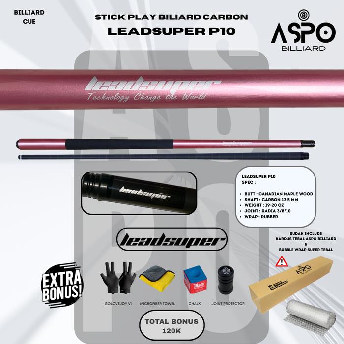 Leadsuper P10 Stik Billiard Carbon Cue Stick Play Billiard Stik Biliar Stik Play Stick Billiard Ball