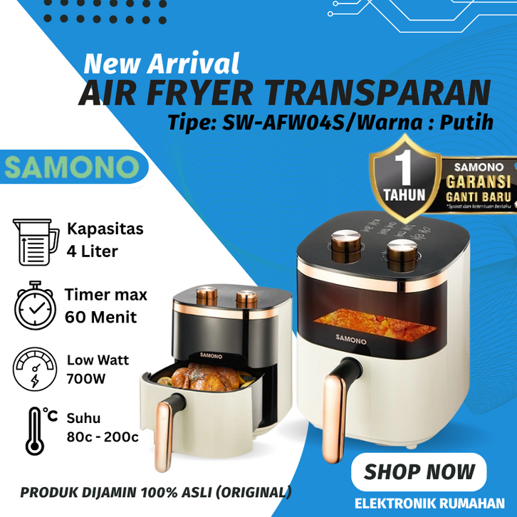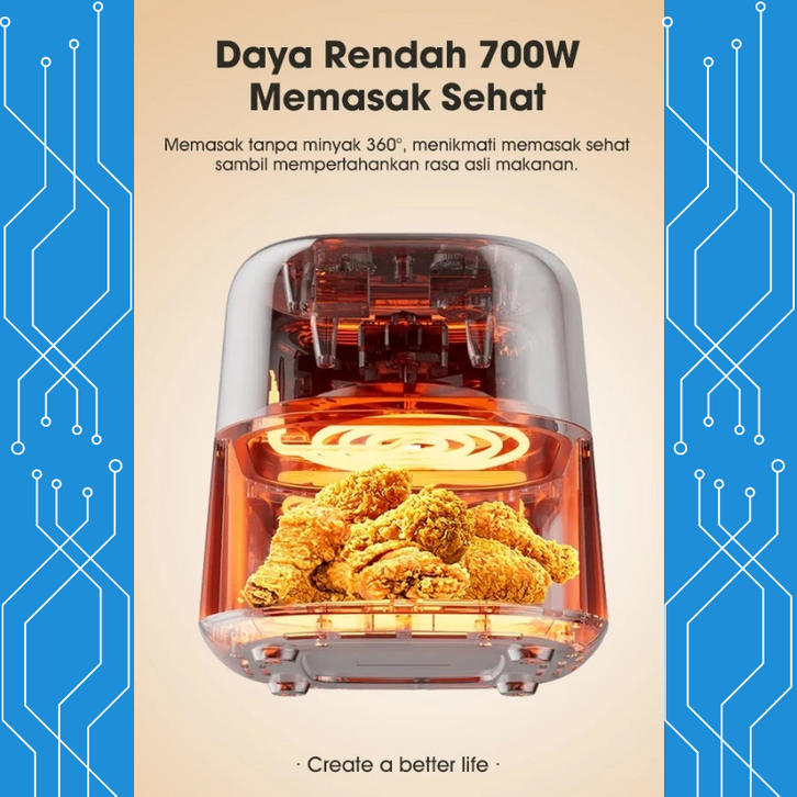 Elektronik Rumah Air Fryer Transparan 4 Liter Low Watt 700Watt SNI Kapasitas 4 Liter Menikmati Makanan Tanpa Minyak