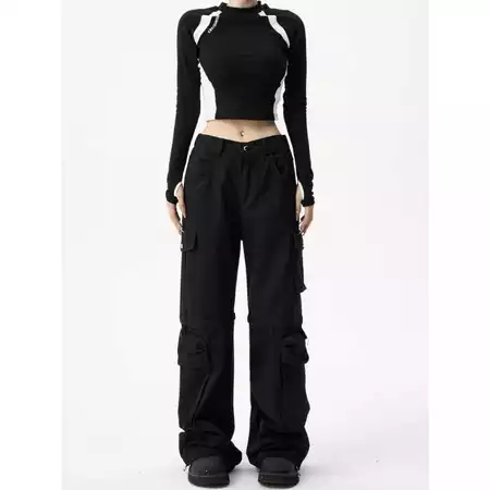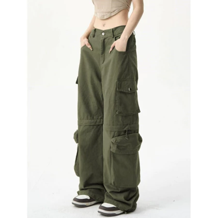 Celana baggy cargo harajuku oversized multi saku untuk pria dan wanita wide leg kasual