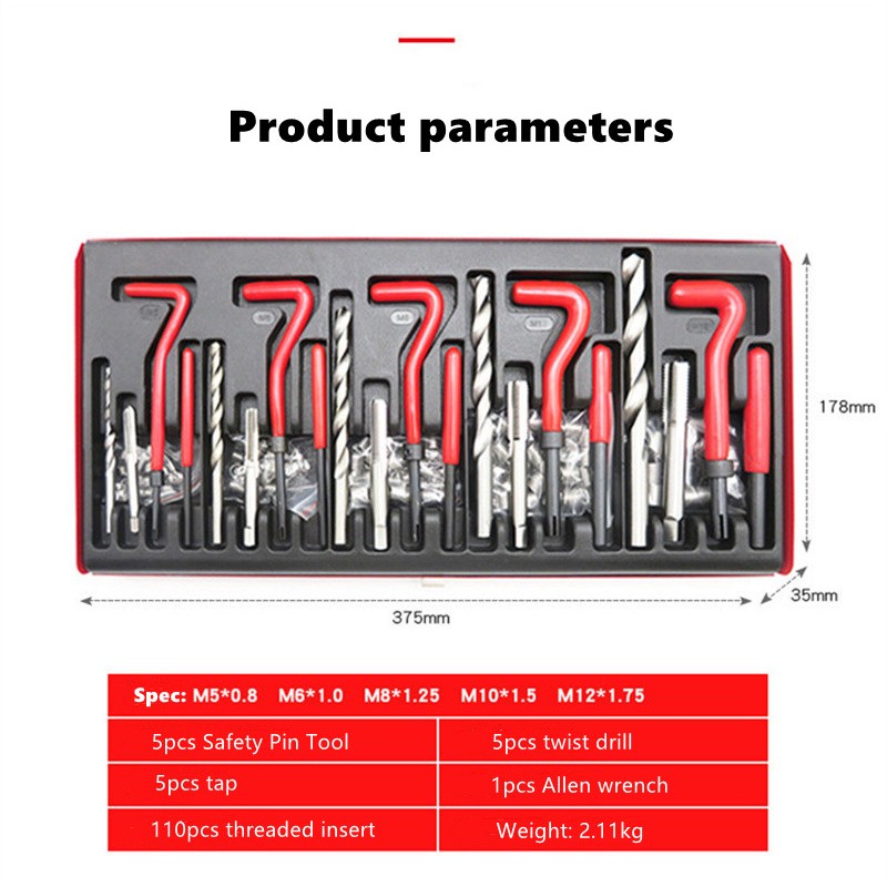 131Pcs Benang Perbaikan Alat Kit untuk M5 M6 M8 M10 M12 Set Master Ekstraktor Injektor Diesel Benang Memutar Mata Bor He