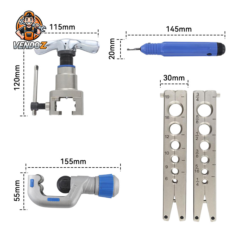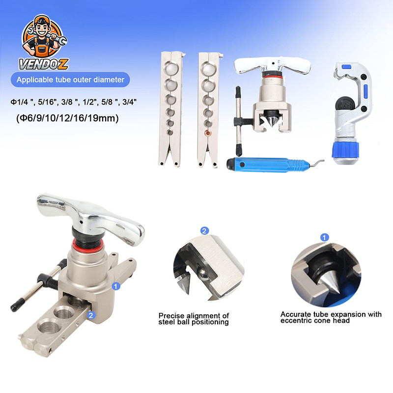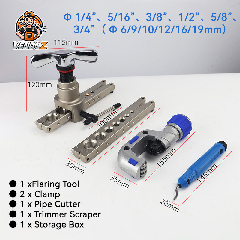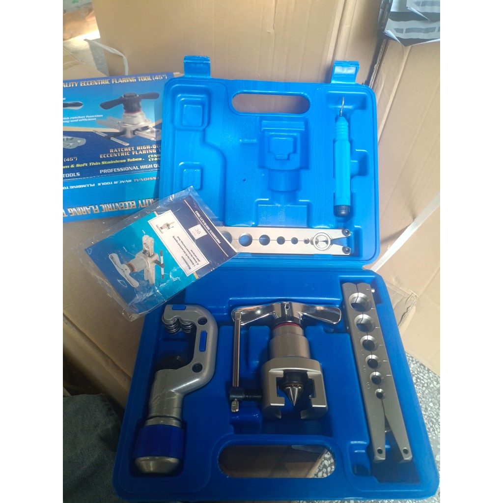 ✅ Gift✅ 5 in 1 Flaring Tool 6-19mm Single Flare Tool 45° Kit Alat Manual VFT 808 I S 3/16-3/4 Inch Tipe Eksentrik bagus