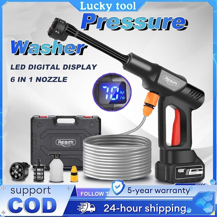 Reaim Alat Cuci Mobil pis tol Air Tekanan Tinggi Alat Portable Nirkabel Untuk Nyuci Mesin Cuci Lithium