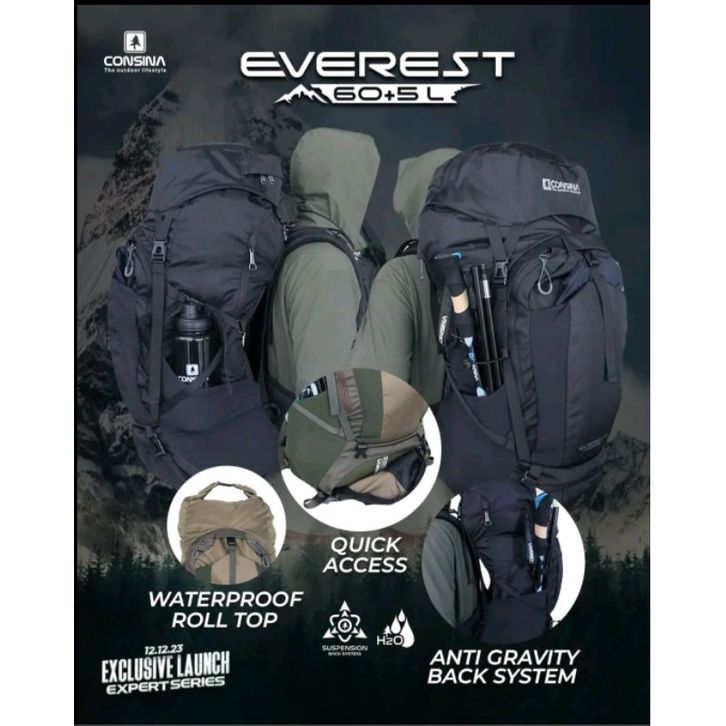 consina everest 60 + 5 L anti gravity original carrier ransel 70 L up