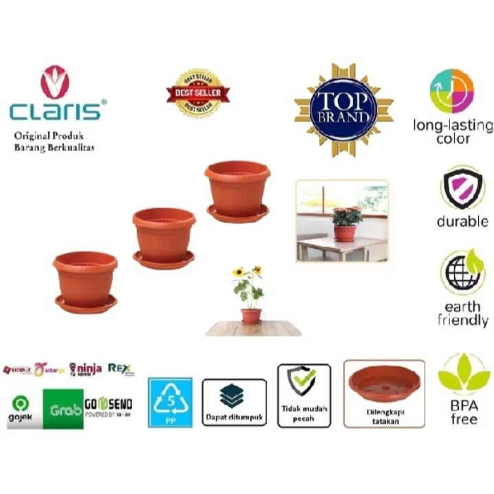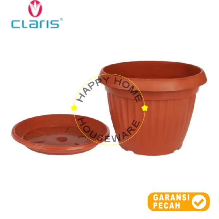pot bunga plastik murah terlaris CLARIS Pot Bunga Florence + Tatakan / Pot Tanaman Bunga Plastik 30cm Terracotta 5830