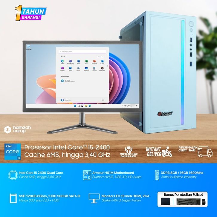 KOMPUTER FULLSET CORE i5 RAM UP 16GB SSD UP 256GB HDD 500GB Monitor 19 Inchi