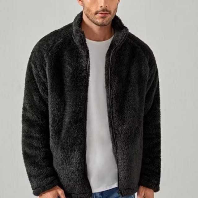 Jaket Pria Winter Fleacee Bulu Sherpa Polos Tebal Series Original Nr Kamila