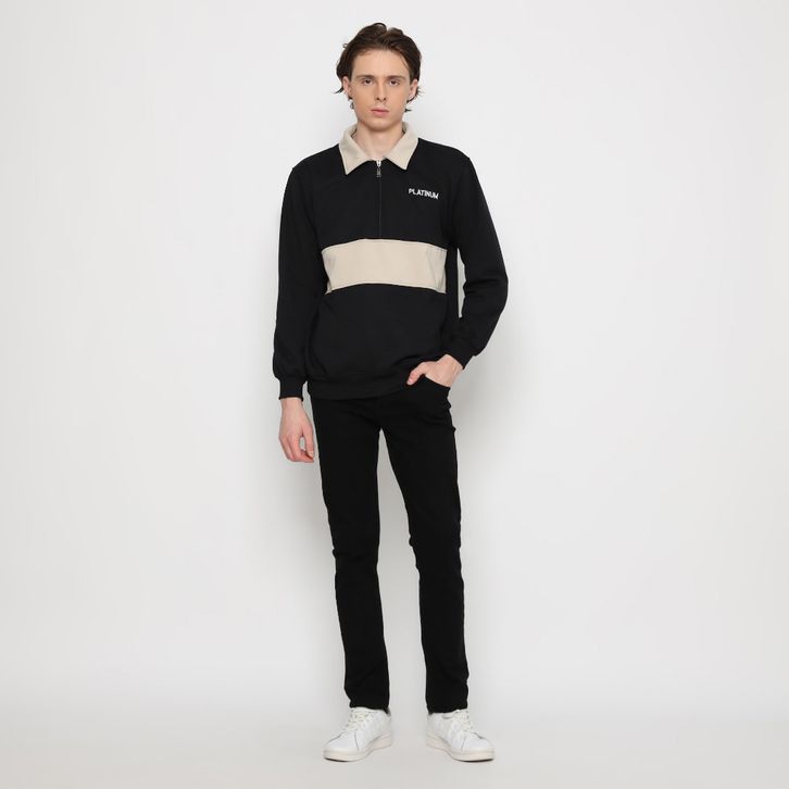 PLATINUM WORLD Sweatshirt Crewneck HALF ZIPP Rugby Pria - Wanita Size / Ukuran Jumbo M - XXL