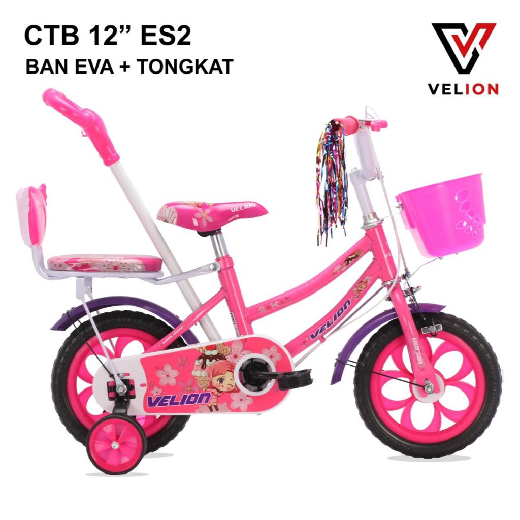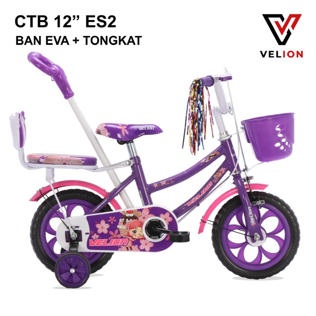 Sepeda anak cewek mini 12 in velion dorongan e2 ban evastik dorongan