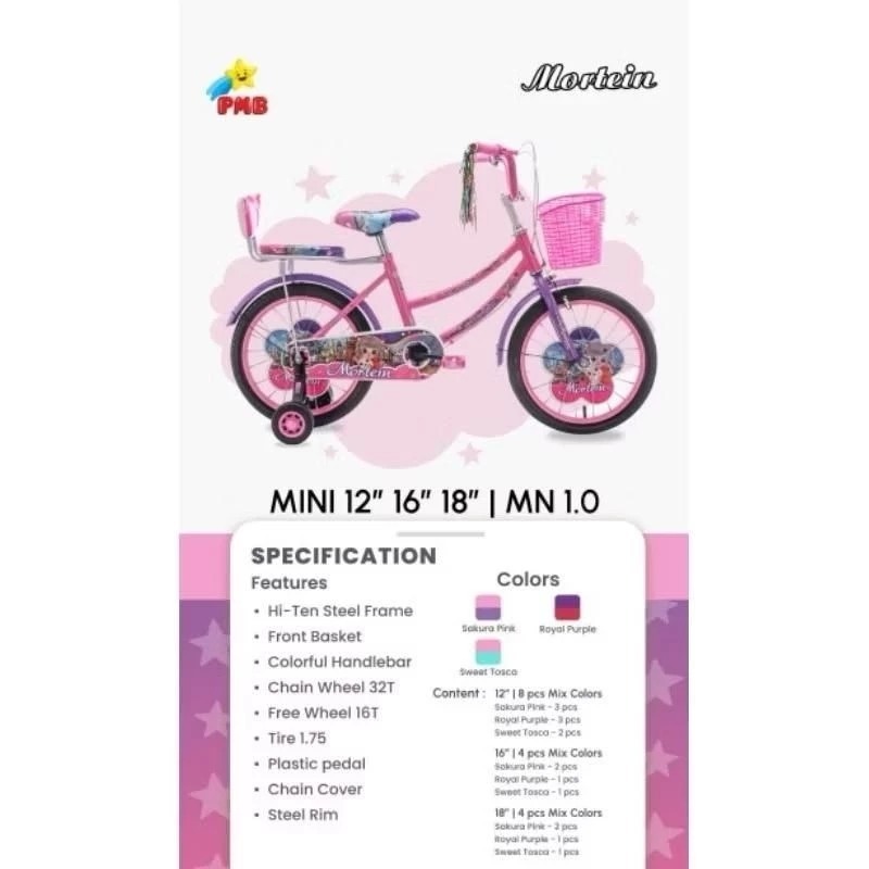 Sepeda Anak Mini CTB Perempuan Murah Ukuran 12" / 16" / 18" inch MORTEIN MN 1.0