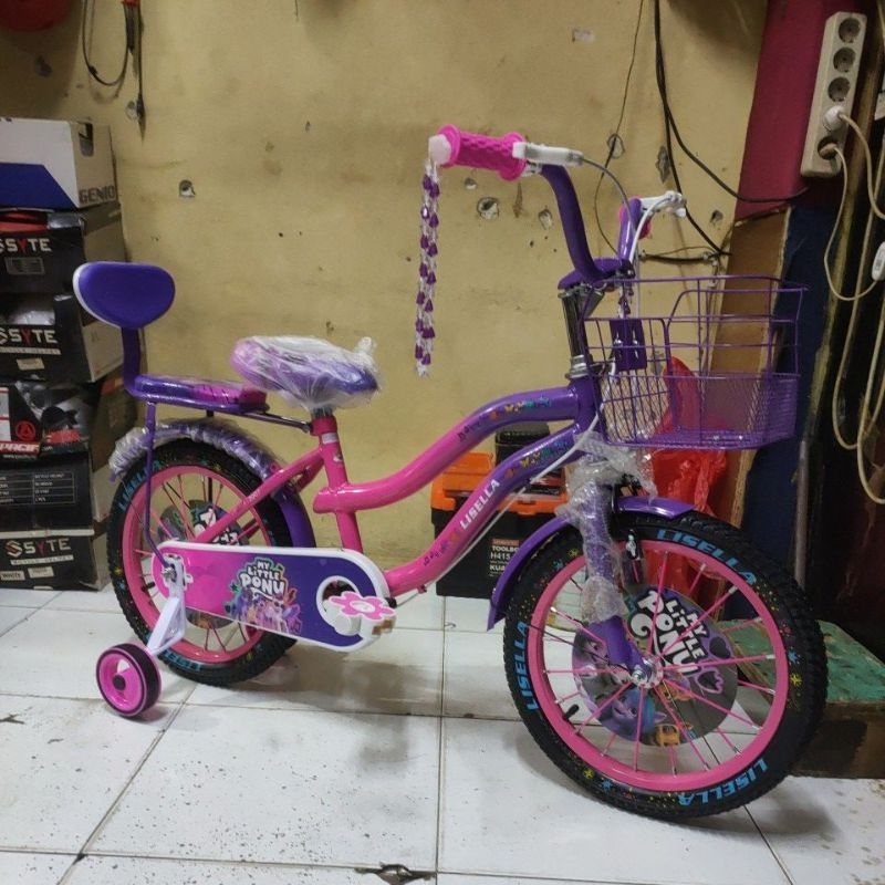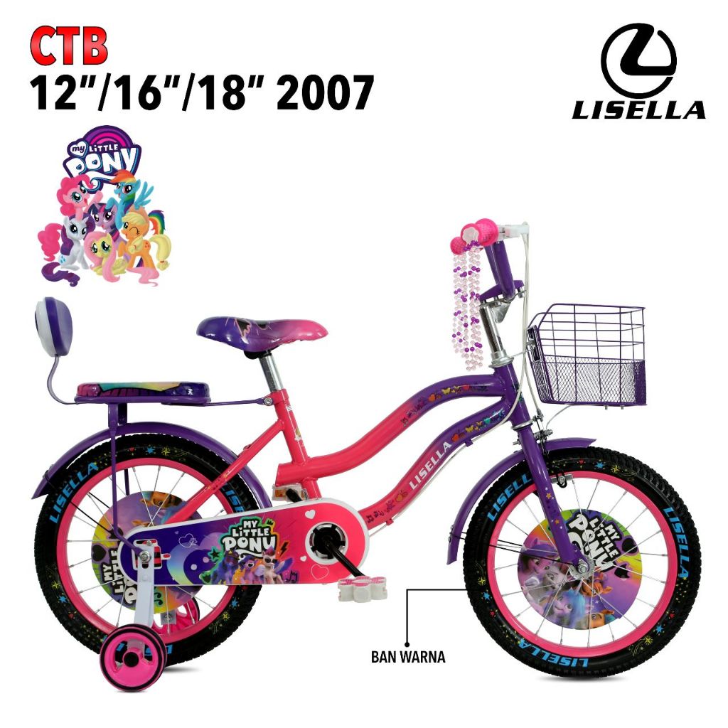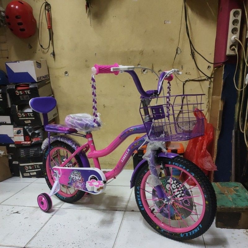Sepeda anak perempuan mini lisella 2007 litte pony keranjang besi ukuran 12 in 18 in dan 18 in