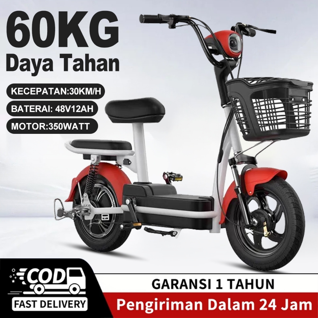 Sepeda Listrik dewasa Sepeda Motor Listrik Kapasitas angkut 200kg 48v 12ah Sepeda listrik Garansi 1 tahun