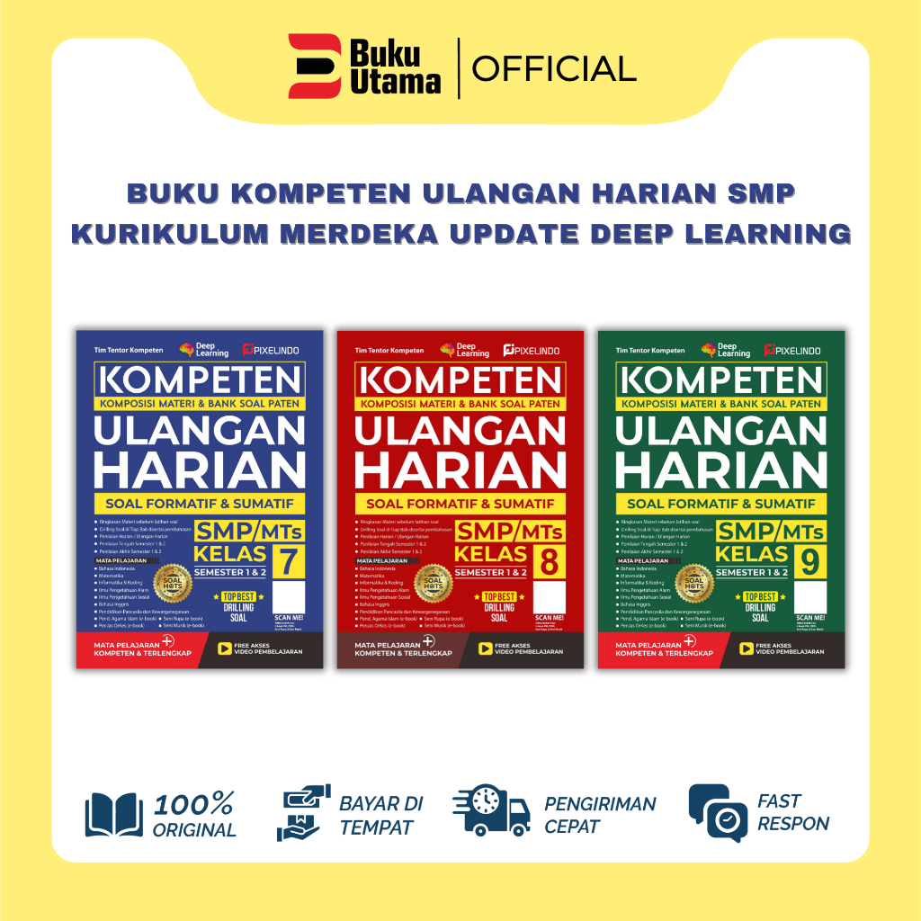 Buku Kompeten Ulangan Harian SMP/MTS Kelas 7, 8, 9 Kurikulum Merdeka Update Deep Learning, Pixelindo