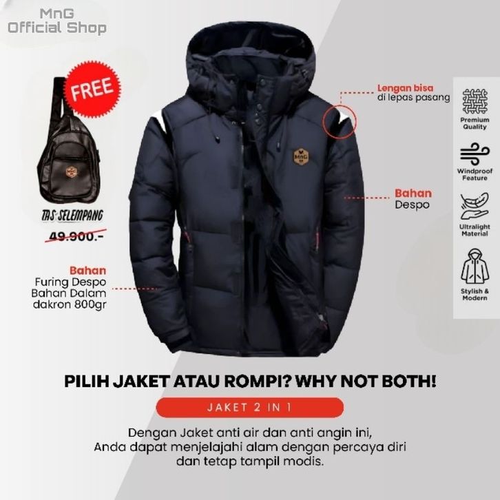 MnG Jaket Puffer Bisa Jadi Rompi Gunung Waterproof Windproof Tebal Hangat Bahan Despo Premium