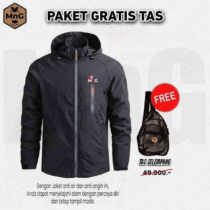MnG Jaket Gunung Anti Air dan Angin Pria Windbreaker Outdoor Bahan Taslan Premium