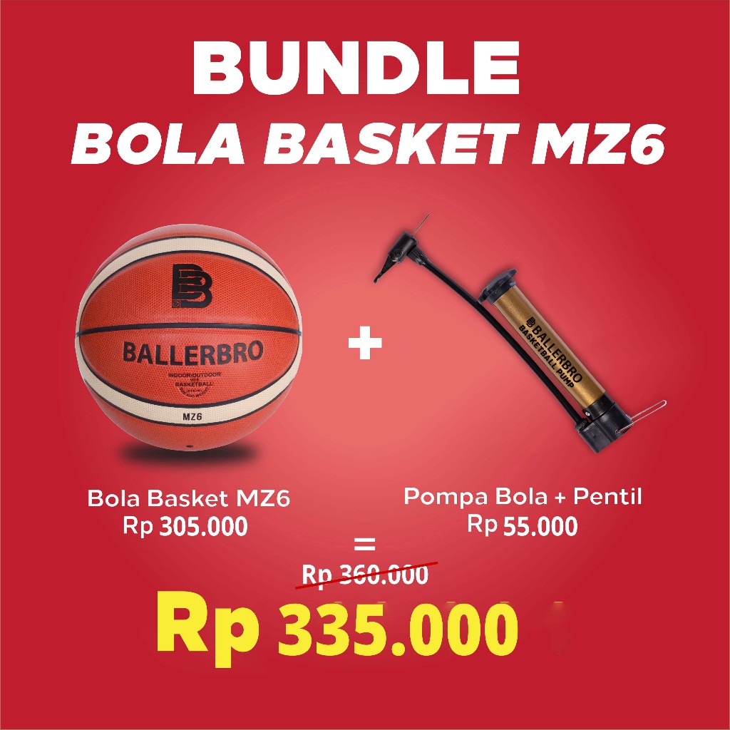BUNDLE Bola Basket MZ6 (Leather) + Pompa Bola & Pentil BALLERBRO