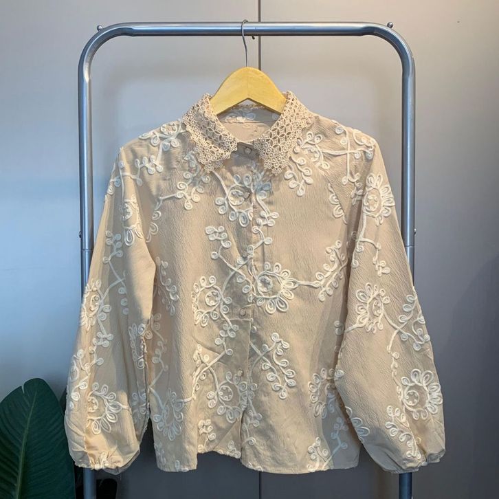 (TERLARIS)Ladyora - Khalisa Kemeja Blouse Wanita Bordir Floral Lengan Panjang Elegan
