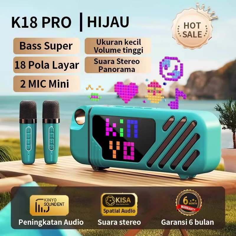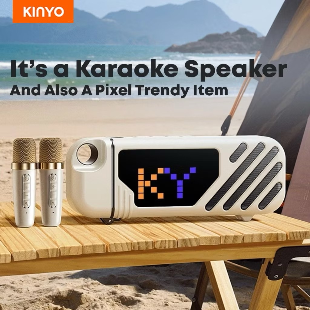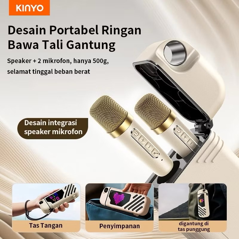 [Super Bass ] KINYO K18 PRO Speaker Bluetooth Karaoke Set 2Mic Karaoke Keluarga/ Bernyanyi di Luar Ruangan Portable