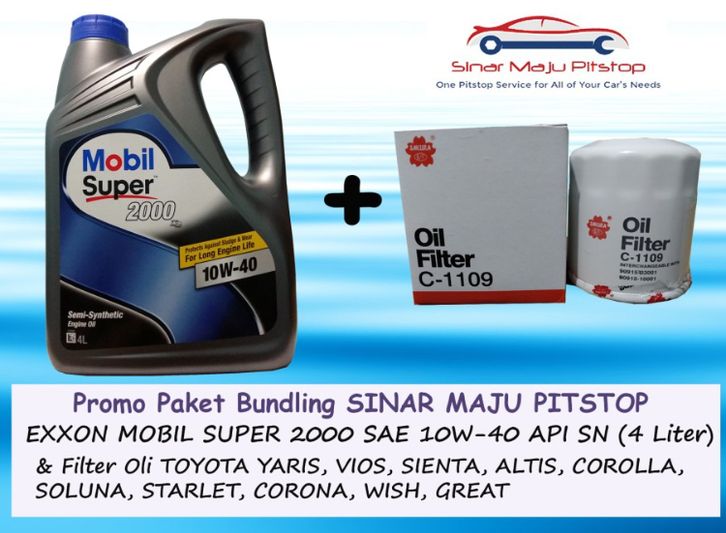 Paket Bundling Oli EXXON MOBIL SUPER 2000 10W-40 API SN 4 Liter & Filter Oli TOYOTA STARLET & CORONA & WISH & GREAT