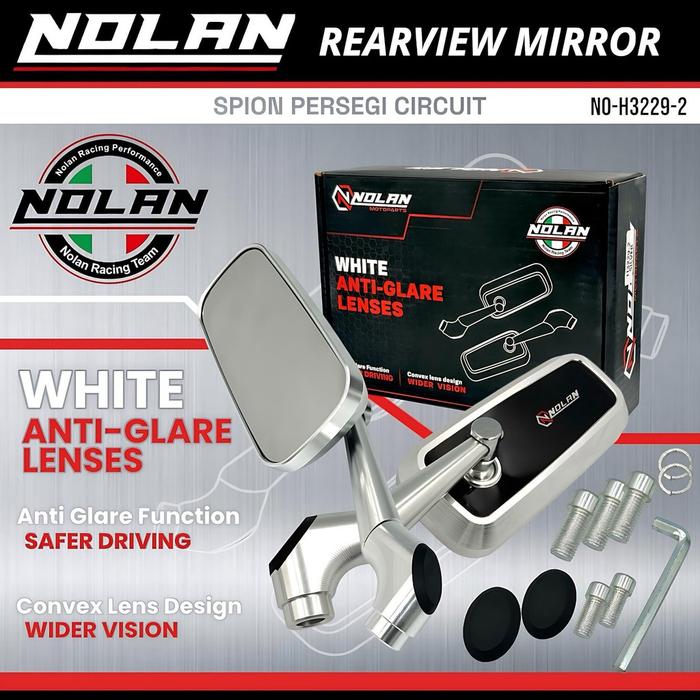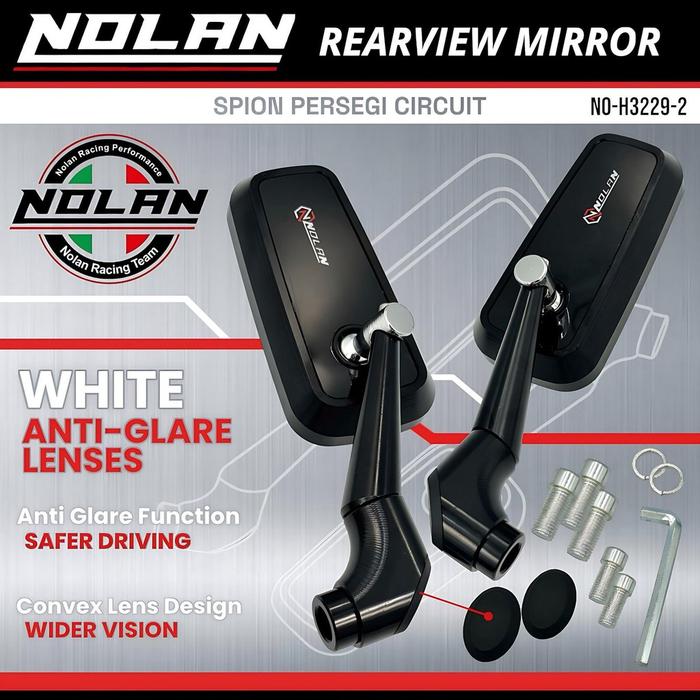 NOLAN Spion Persegi Circuit H3229-2 Kaca Putih Bahan Full Aluminium Alloy Universal Motor