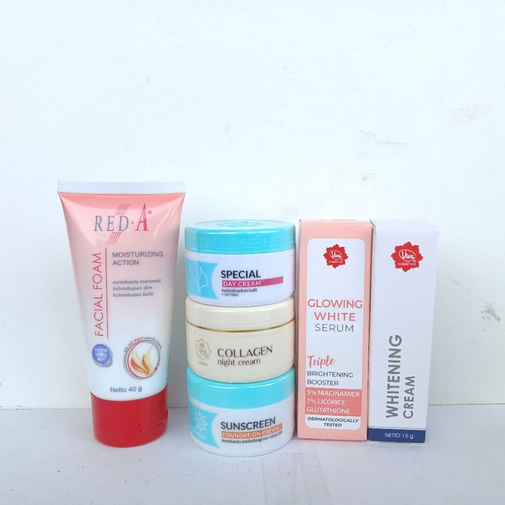 Paket Skincare VIVA 6 in 1 - Perawatan Kulit Wajah Lengkap dengan Cream Malam & Siang, Whitening,