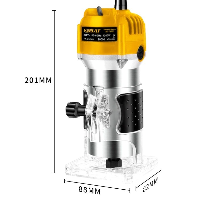 KEELAT 1200W Mesin Profil Power Tools Handheld Palm Wood Router With 15pcs Bits Electric Wood Trimmer Laminate