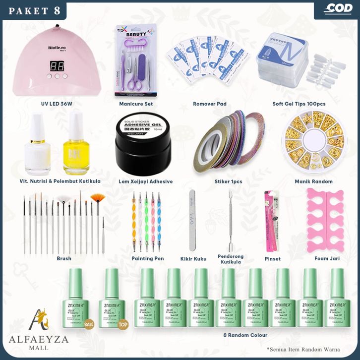 Paket Nail Art Lengkap 22pcs + Lampu UV/LED – Set Kutek Gel Warna, Base & Top Coat, Peralatan Manikur Pedikur