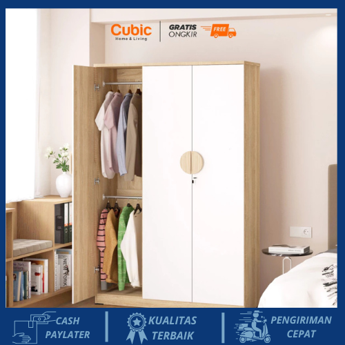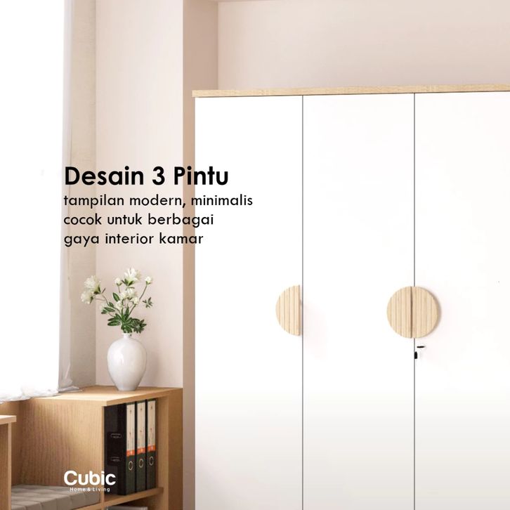 Cubic Lemari Pakaian Minimalis Lemari Baju 3 Pintu LUNA LP 3P - HM Lemari Pakaian Kayu Gantung Berkualitas