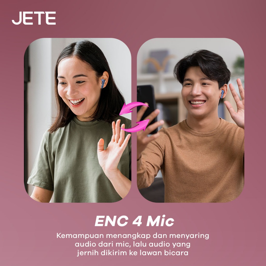 TWS BLUETOOTH ENC WITH 4 MIC JETE T13 BT 5.4 IPX5 PLAYTIME 20H - GARANSI 2 TAHUN ORIGINAL OFFICIAL STORE