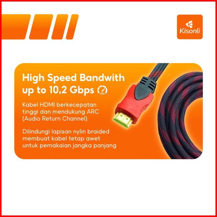 Kisonli Kabel Hdmi To Hdmi Jaring 5m High Speed Full Hd Plated High Quality Ak2004
