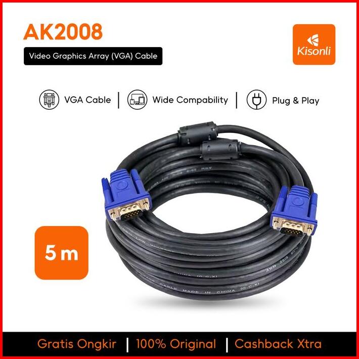 Kisonli Kabel Vga To Vga 5meter Cable Vga Male To Male High Quality Ak2008 Device