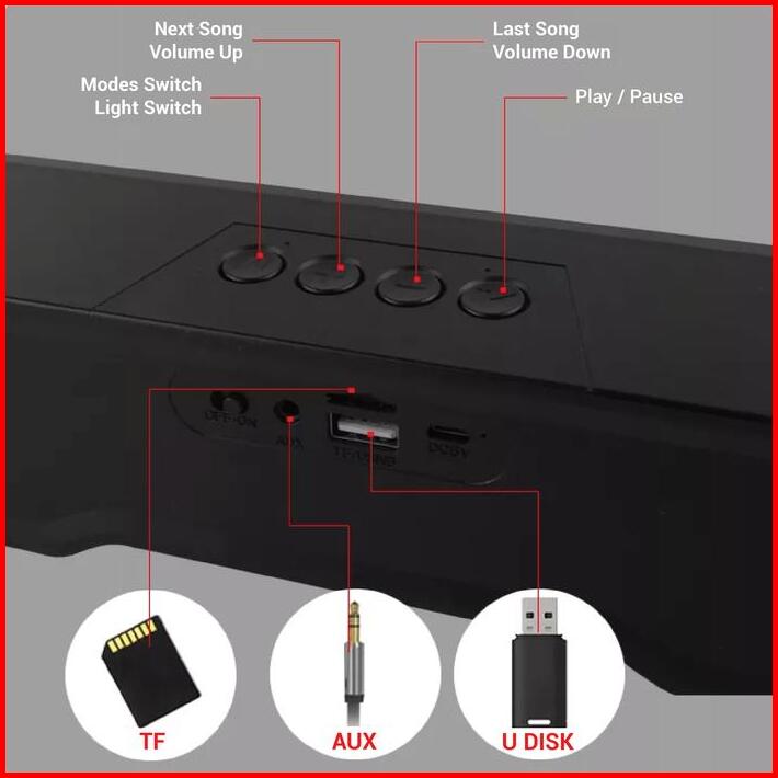 Kisonli Speaker Portable Wireless Bluetooth Led913 Stereo Bass Effect With Super Bass