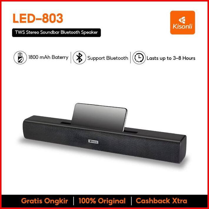 Kisonli Speaker Bluetooth Soundbar Led803 Tws Stereo With Holder Desing 1800mah Rechargeable Wireless Black Handphone