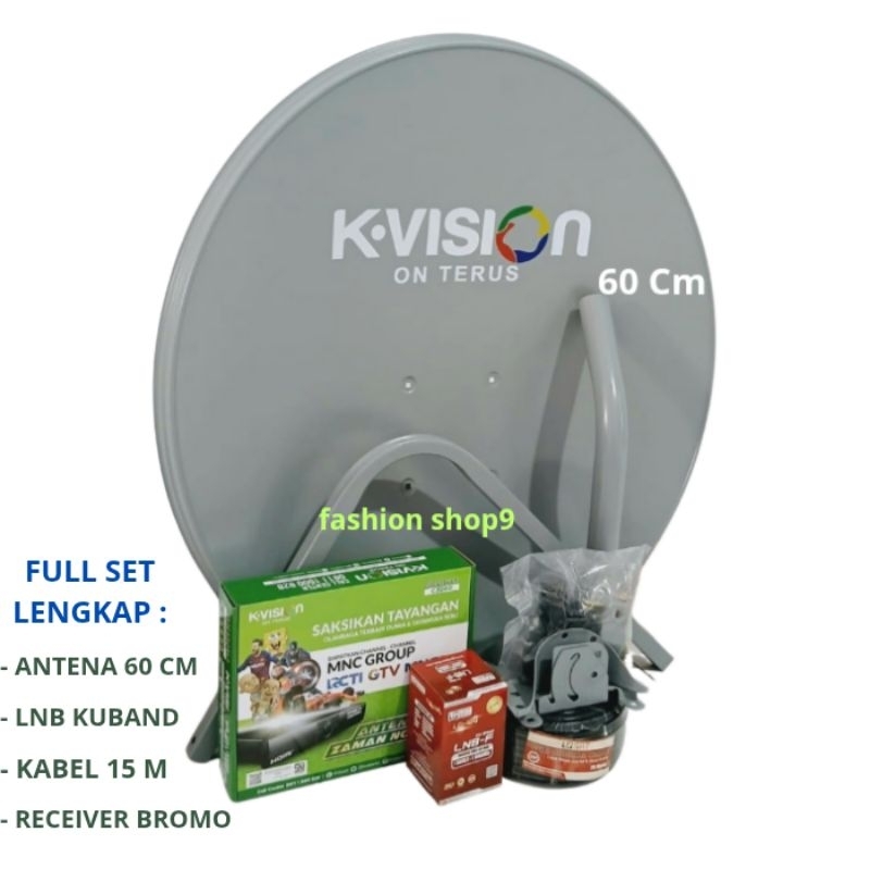 ANTENA TV PARABOLA 60 CM KVISION LENGKAP RECEIVER BROMO C2000 GRATIS MNC GROUP