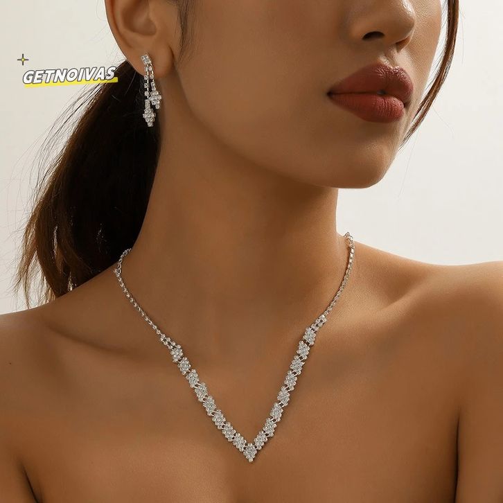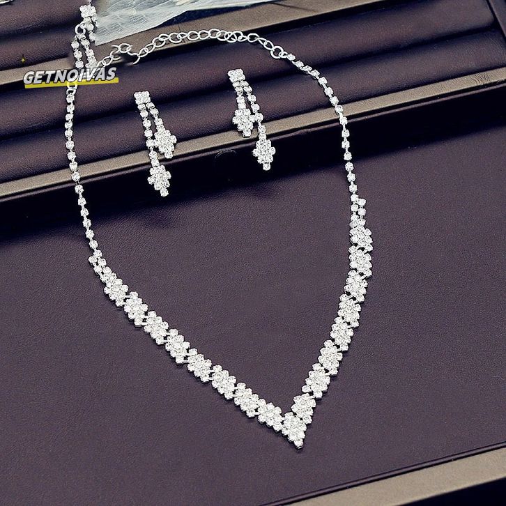 Set Perhiasan Kalung Anting Pengantin Set Berlapis Perak Berlian Imitasi Gelang Rumbai Anting Perhiasan Pernikahan Perhi