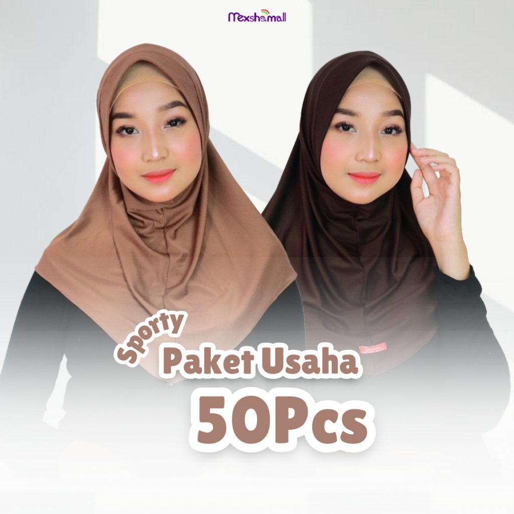 Paket Usaha Hijab Jilbab Bergo Instan Sporty By Shamira Jersey Premium Isi 50 Pcs