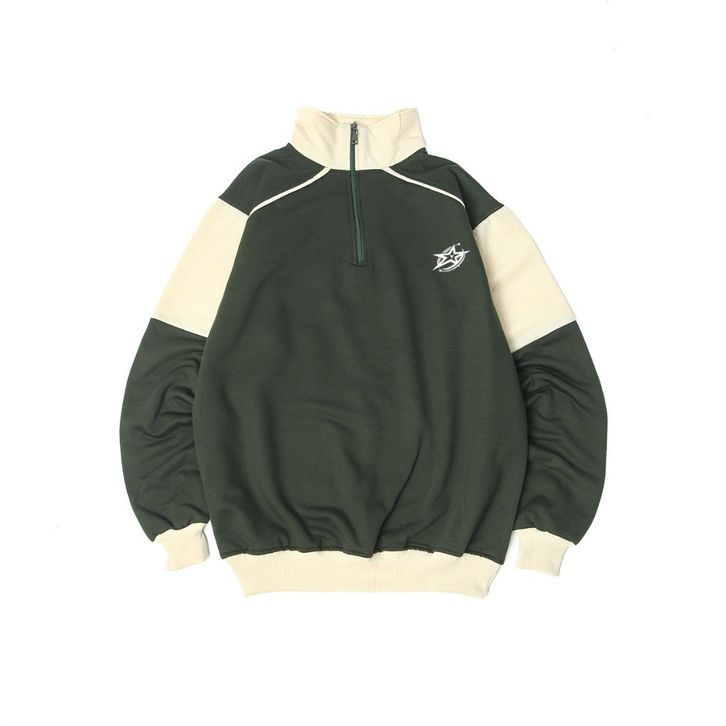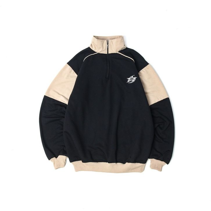 PLATINUM WORLD Sweatshirt Crewneck HALF ZIPP Rugby BT Beige Hitam Polos Couple Pria - Wanita