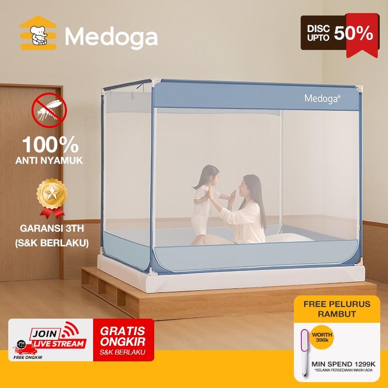 Medoga Kelambu Tidur Polos Kotak Anti Jatuh Anti Nyamuk Bayi Anak Dewasa Bedrail Aman
