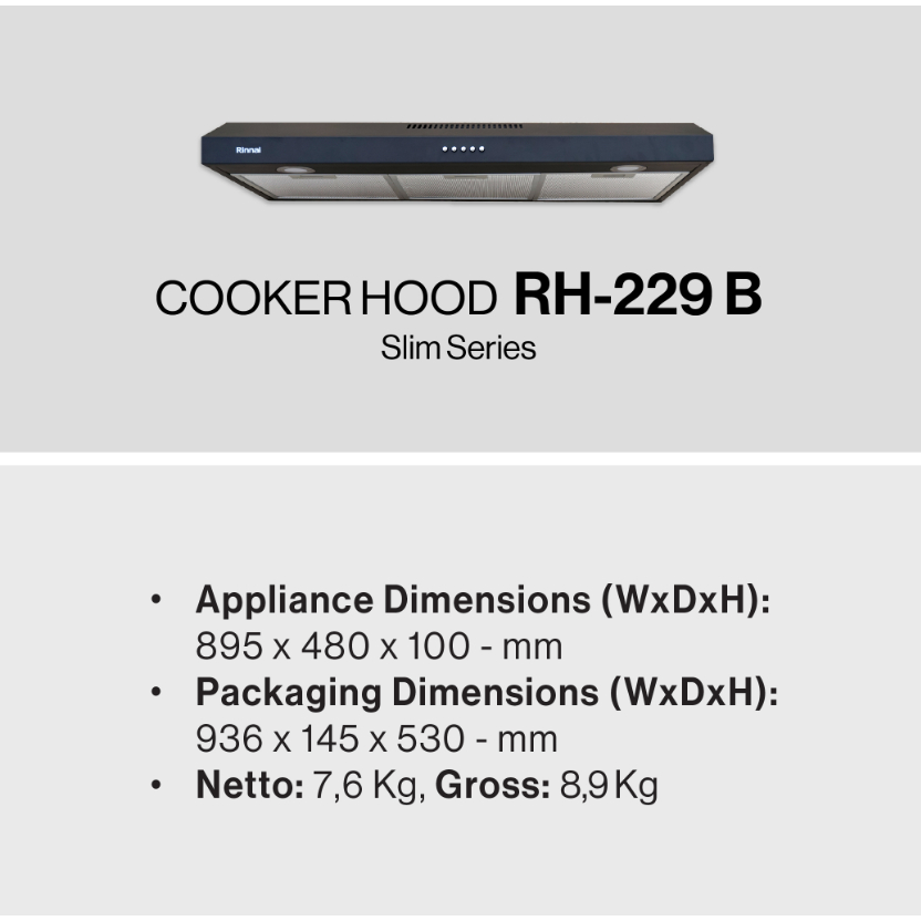 Rinnai RH-229B I RH-229SS Cooker Hood Penghisap RH 229 B / RH 299 SS