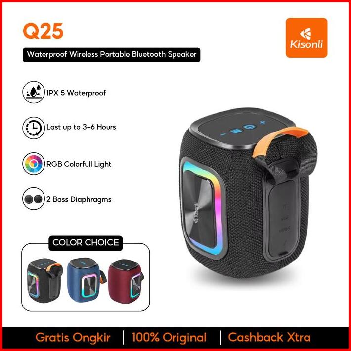 Kisonli Speaker Bluetooth Tenteng Q25 Tahan Air Ipx5 Portable Wireless Rgb Light Colorfull Bass