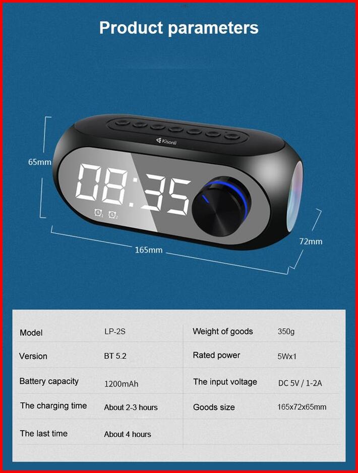 Speaker Bluetooth 5.2 Portable Clock Jam Alarm Lp2s 1200 Mah Bass