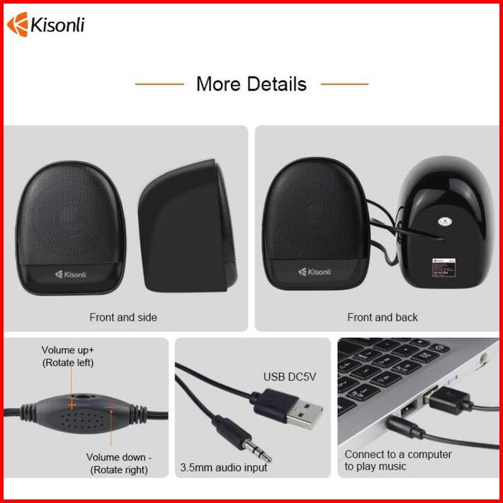 Kisonli Gaming Speaker Pc Laptop Komputer Ks08 Dual Bass With Volume Control