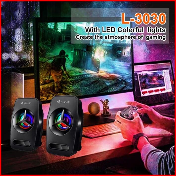 Kisonli Gaming Speaker L3030 For Komputer Laptop Pc Hp Led Rgb Light Switch Volume Control