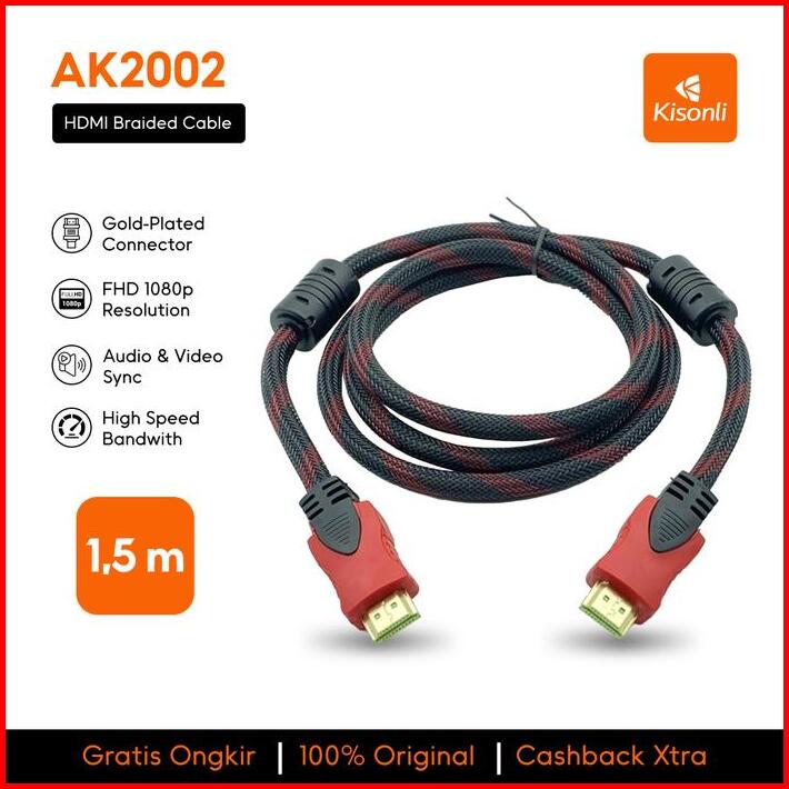 Kabel Hdmi To Hdmi Jaring 1.5m High Speed Full Hd Plated High Quality Ak2002