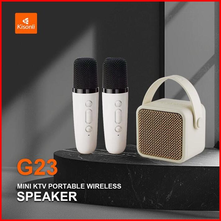 Kisonli Speaker Bluetooth Karaoke 5.3 Dengan 2 Microphne G23 Speaker Wireless Mini Ktv Multifunctional