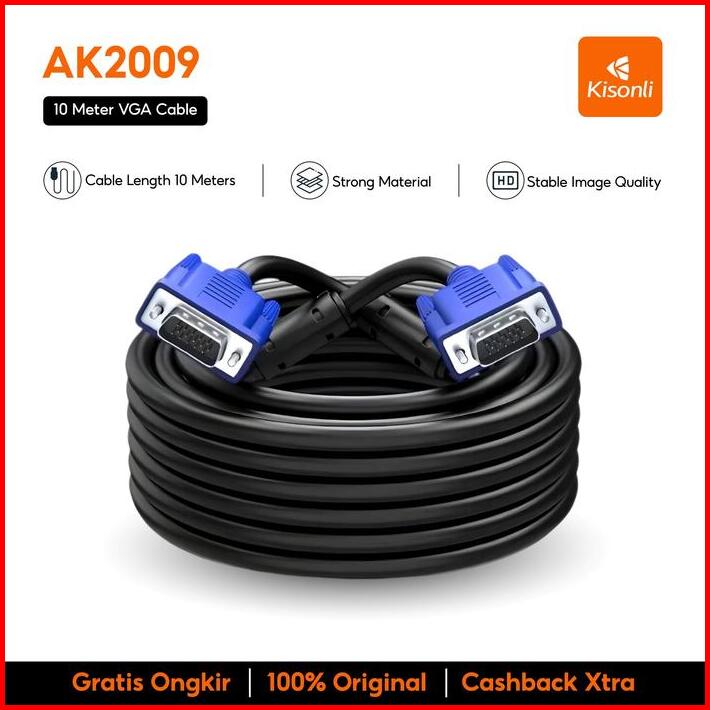 Kisonli Kabel Vga To Vga 10 Meter Cable Vga Male To Male High Quality Ak2009