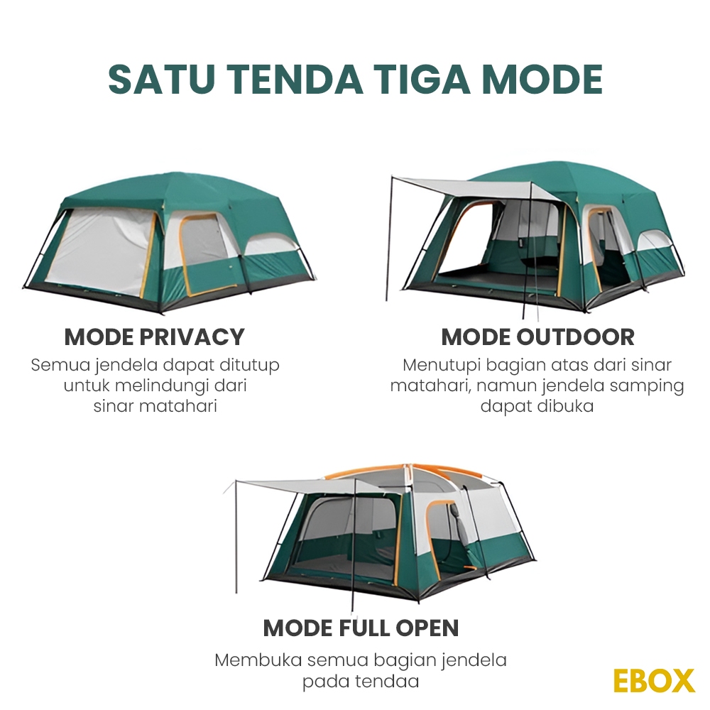 Tenda Camping Jumbo 10-13 Orang Outdoor Ada 2 Ruangan Waterproof Luxury Automatic