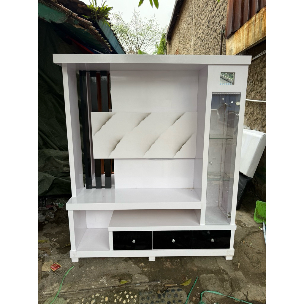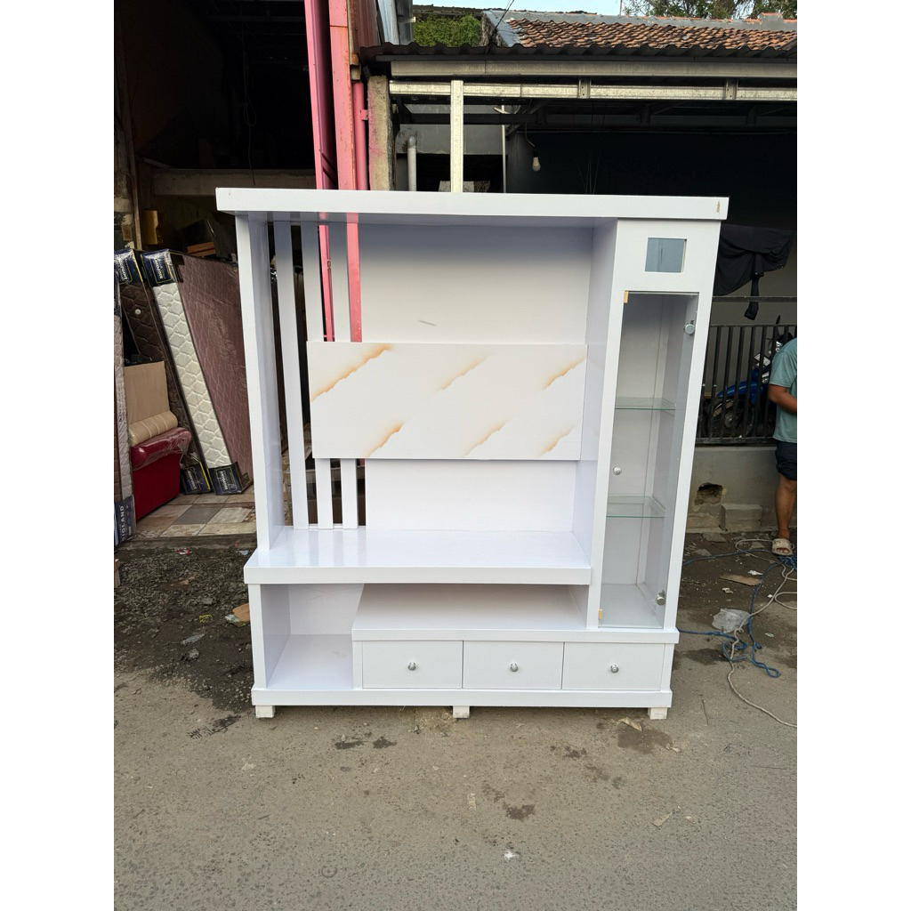 lemari hias ruang tamu Bupet tv partisi lampu LED bahan multiplek ukuran 160x40x200 muat tv 32/43 best seller terlaris