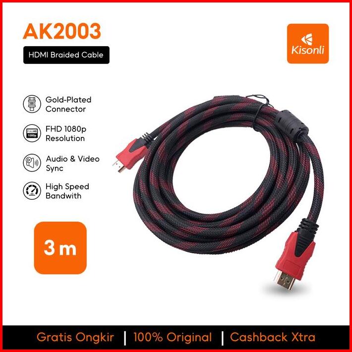 Kabel Hdmi To Hdmi Jaring 3m High Speed Full Hd Plated High Quality Ak2003