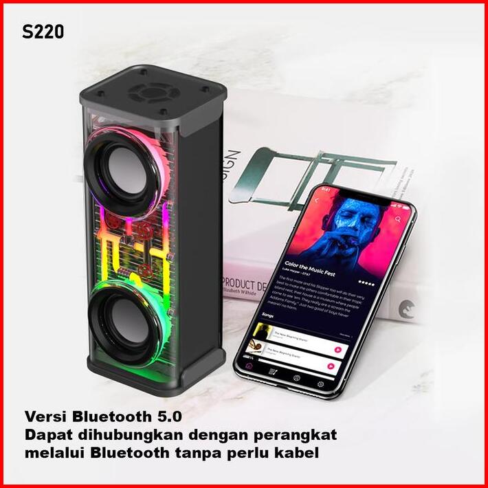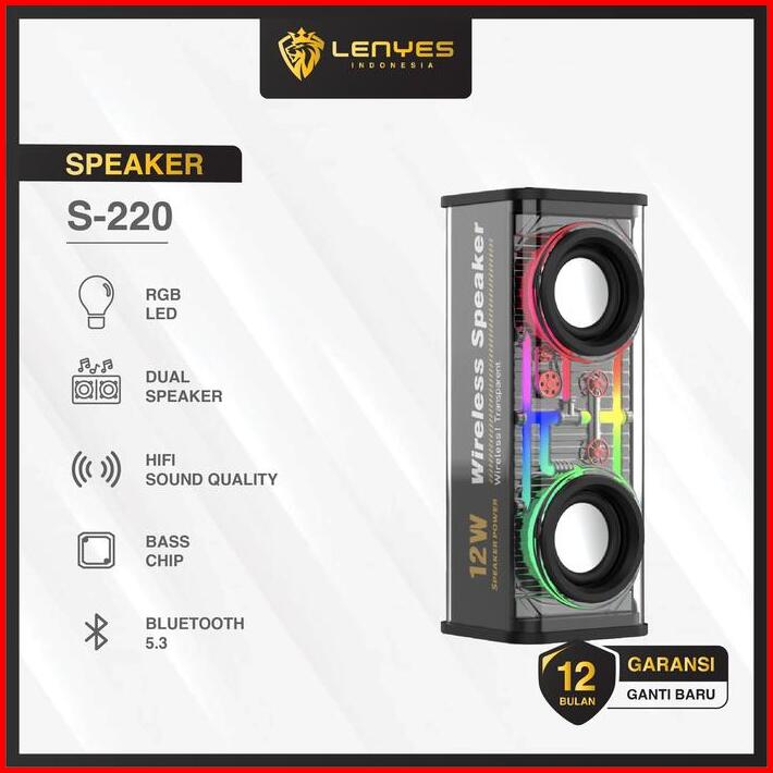 Lenyes S220 12w Mini Transparan Wireless Speaker Bluetooth 5.3 Transparant Rgb Led Light Tws Portable