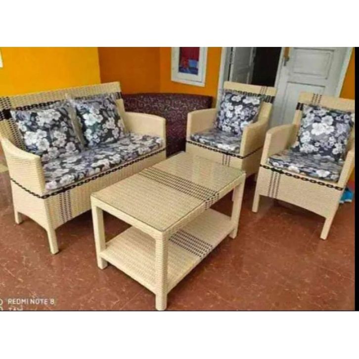 Kursi Teras Depan Rumah Kursi Tamu Hawai Rotan Sintetis + Kaca Kursi Taman Kursi Santai Sofa Minimalis